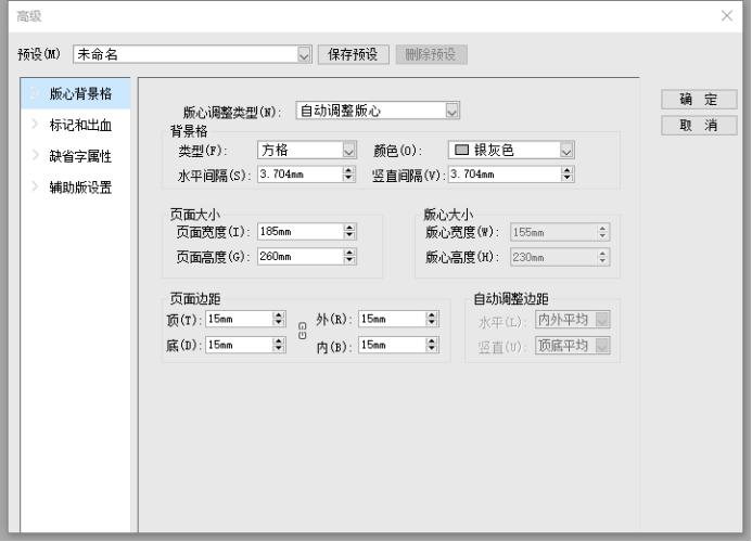 在【版心背景格】中,可以针对不同的版心要求进行进一步的调整,同时也可以对背景格的具体参数进行调整。
