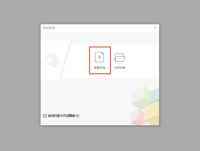 欢迎界面 第二种是单击菜单栏的开始选项,选择【文件-新建】(快捷键ctrl+N),弹出新建文件对话框;或者单击快捷菜单栏中的新建文件