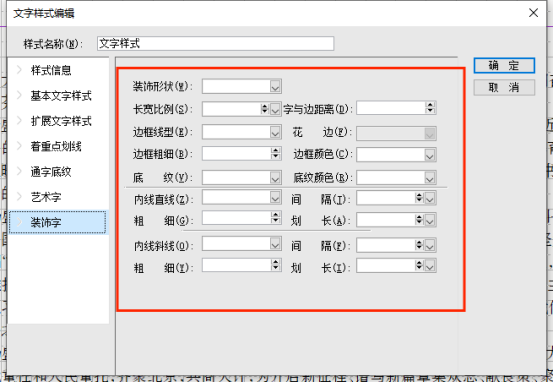 装饰字选项 装饰字选项中,可以对装饰字的具体数值进行设置。